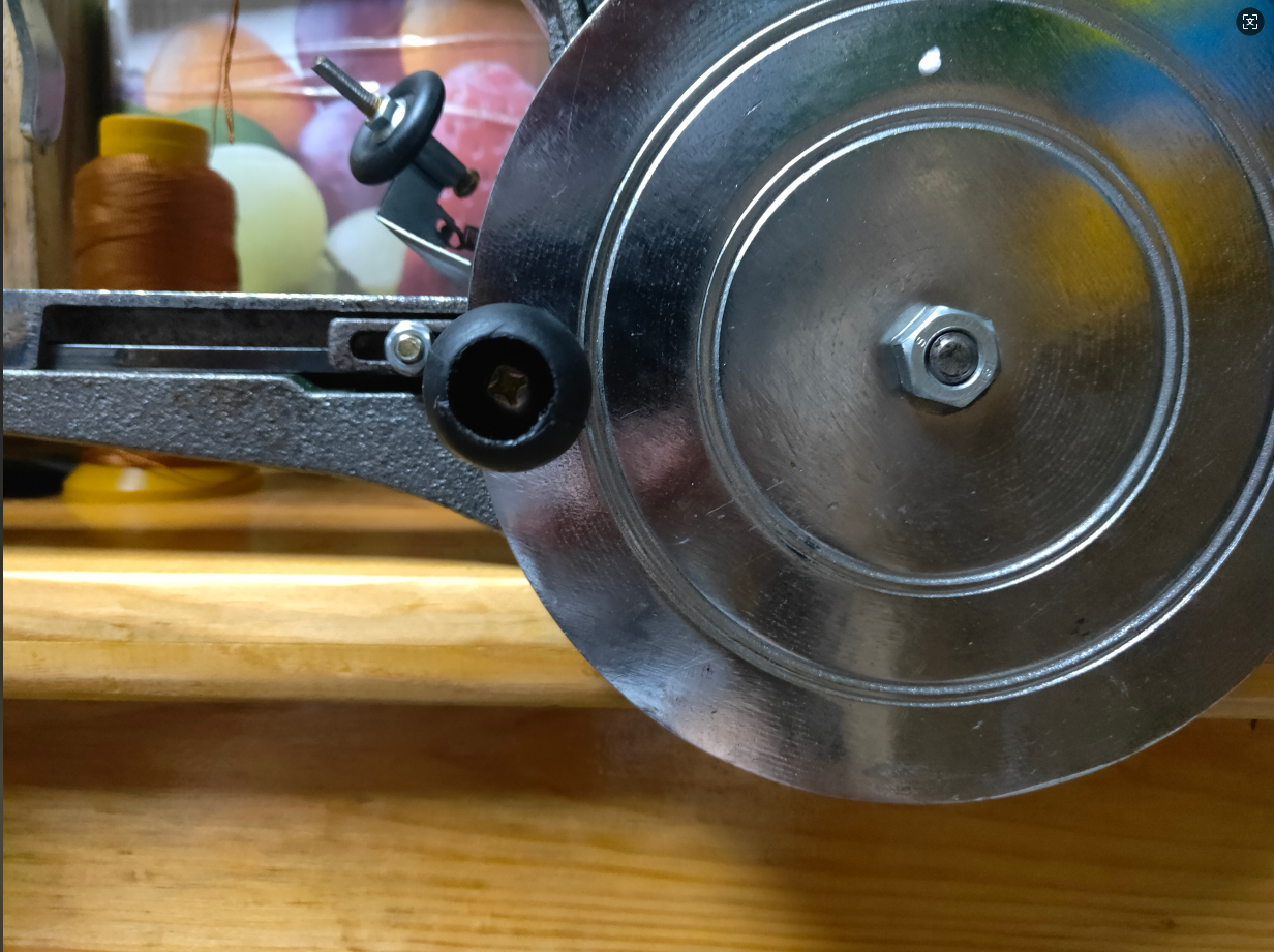 动了手摇盘边上的二个螺帽(如下图),