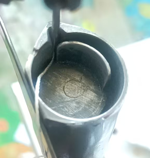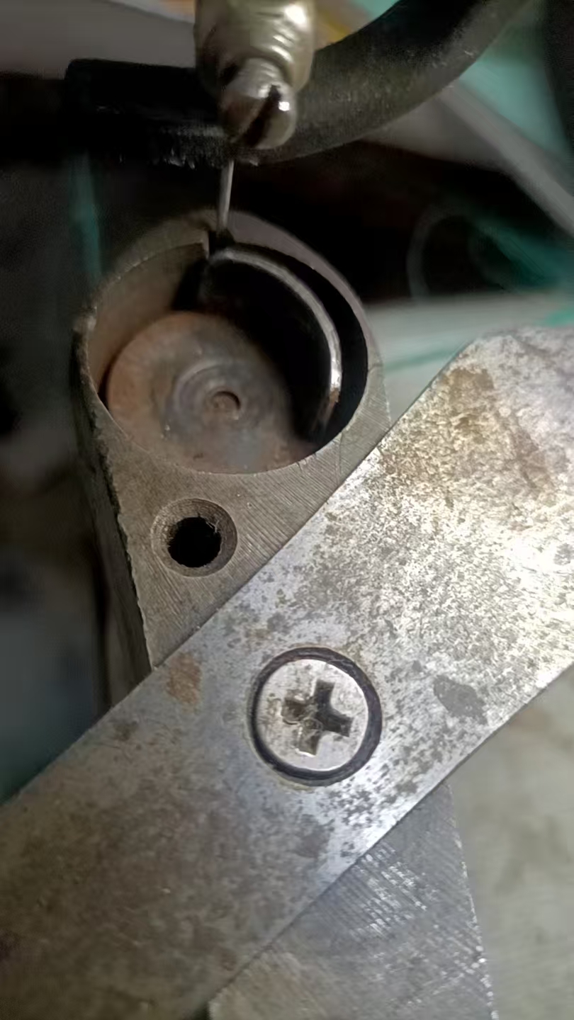 直至如下图所示的针孔和梭托平面相平才行。这样就调节好了。