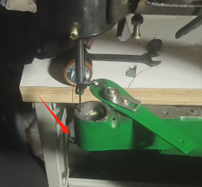 让针到最低位置时,针的高低如下图所示,线拉出来