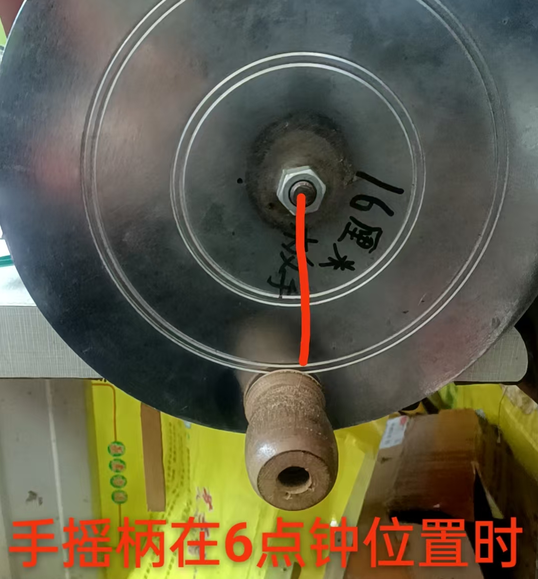 第二步:手摇盘摇到九点方向(和螺帽相平时)